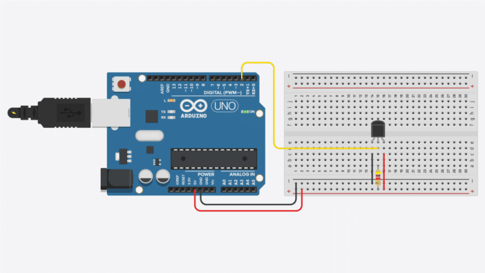 接下來,將中間引腳(DQ)連接到Arduino的任何數(shù)字引腳。在這種情況下,我使用了數(shù)字引腳2。您還必須在DQ引腳和5 V之間添加一個(gè)4.7kΩ的上拉電阻。這將使1-Wire總線的空閑狀態(tài)保持高電平。