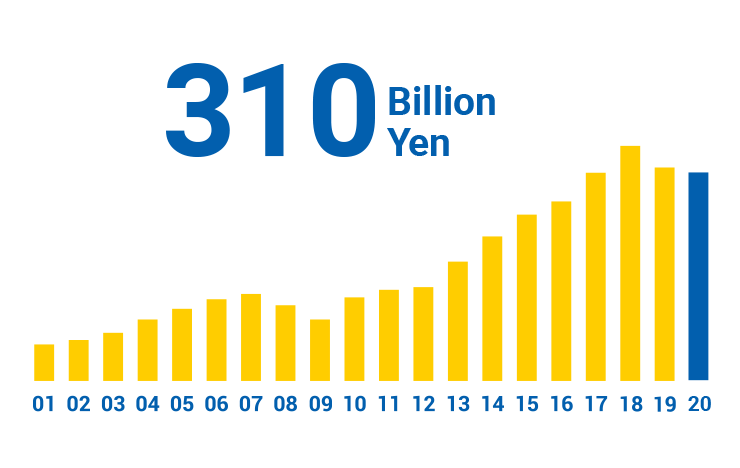 自2002財年以來,我們已開始全面的國際擴張。為了在海外建立MISUMI Q(高品質)C(低成本)T(可靠的快速交貨時間)(業務)模型,我們正在擴展我們的銷售辦事處,制造基地和物流基地,以完善我們的國際業務。