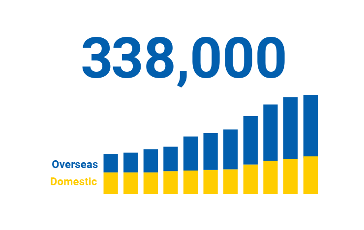 由于國際業務的增長,海外客戶迅速增長,約占總數的60%。