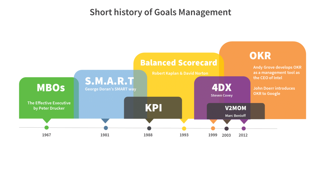 OKR 自 1970 年代以來一直存在。這個概念是由安迪格羅夫創造的,但由約翰多爾推廣,他是谷歌最早的投資者之一。OKR 很快成為谷歌的一個重要焦點,LinkedIn、Twitter、Dropbox、Spotify、AirBnB 和 Uber 等公司也紛紛效仿。