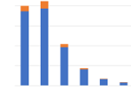 堆疊條形圖表示段彼此重疊。它可以是一個100%堆疊條形圖,其中分離以%表示,也可以是一個簡單的堆疊條形圖,表示實際大小