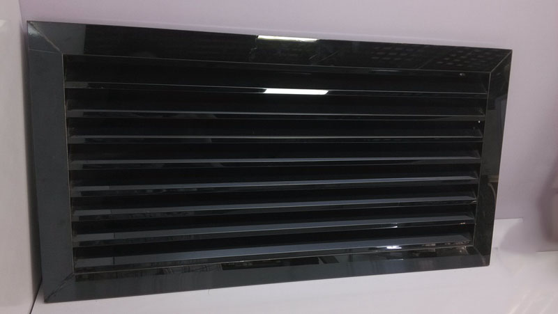 這款出風口采用不銹鋼板經(jīng)過剪板折彎加工而成,加工好之后再拿去鍍鈦,就可以加工成圖片上這種黑色鏡面的效果了。
