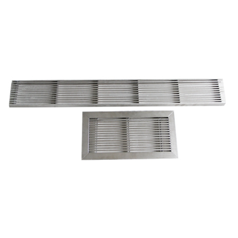 1、不銹鋼長條縫風(fēng)口,風(fēng)口由固定葉片組成,葉片沿平行于長邊排列,每節(jié)最大連續(xù)長度可做成3m,也可把兩節(jié)或多節(jié)拼起來使用,拼縫處采用插接板連接。該風(fēng)口氣流流型屬于平面射流,可用于室內(nèi)送、回風(fēng)口。送風(fēng)時,風(fēng)口上方需設(shè)靜壓箱,以確保垂直下送氣流分布均勻。