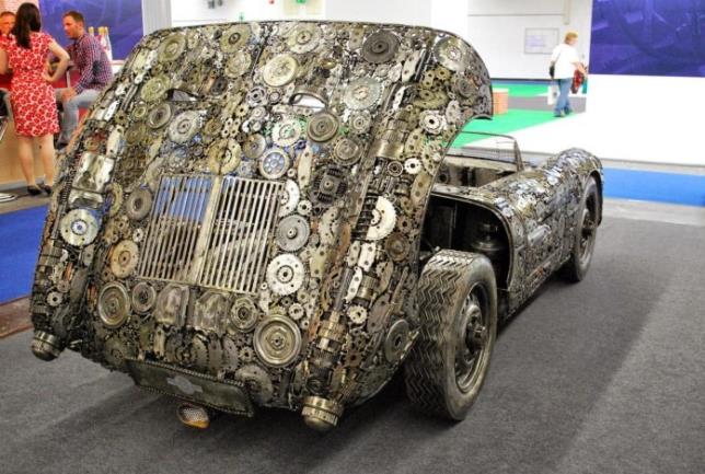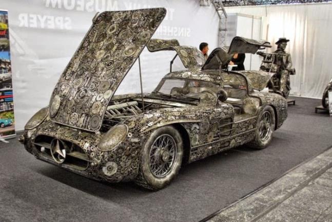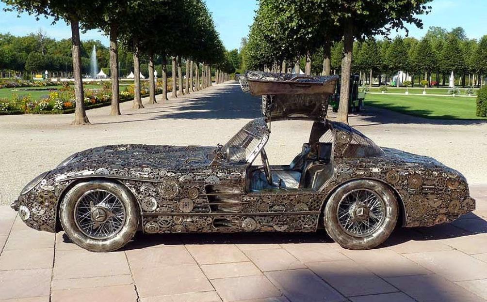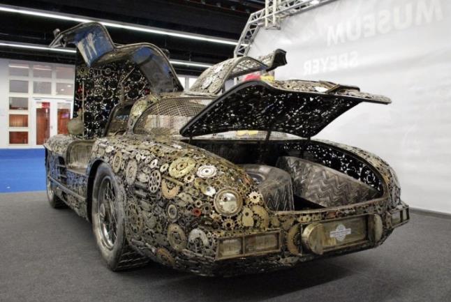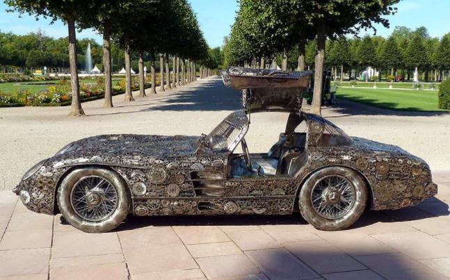 來自德國(guó)的armin ciesielski、peter brakel 和 walter willer 在鋼鐵循環(huán)利用方面取得來成功。三人用 10, 000件廢金屬建造了一個(gè)極其詳細(xì)的梅賽德斯-奔馳 300sl "gullwing " 的副本。這里的復(fù)雜程度絕對(duì)讓人心驚肉跳。請(qǐng)參見以下內(nèi)容: