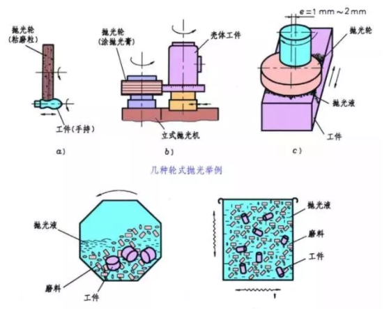 拋光是對零件表面進行修飾的一種光整加工方法,一般只能得到光滑表面,不能提高甚至不能保持原有的加工精度,隨預加工狀況不同,拋光后的Ra值可達1.6~0.008μm。