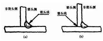 箭頭線相對焊縫的位置一般沒有特殊要求,見圖1—25(a)、(b)。但是在標(biāo)注單邊V、單邊Y、J形焊縫時(shí),箭頭線應(yīng)指向帶有坡口一側(cè)的工件,見圖1—25(c)、(d)。必要時(shí),允許箭頭線彎折一次,如圖1—26。