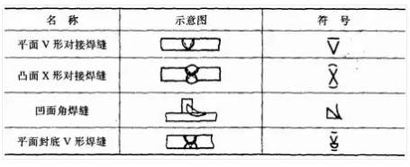 輔助符號是表示焊縫表面形狀特征的符號,見表1—5。應(yīng)用示例見表1—6。