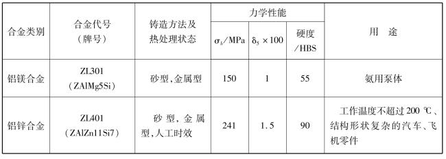 表1.5.12 幾種常用鑄造鋁合金的牌號(hào)、力學(xué)性能及用途