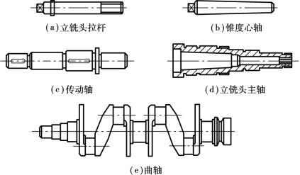 軸類零件是常見的典型零件之一,它在機器中用來支承齒輪、皮帶輪等傳動零件,傳遞扭矩和運動。按結構形狀不同,軸類零件一般可分為簡單軸、階梯軸和異形軸3類,如圖5.3.9所示。