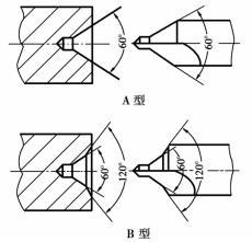 中心孔分為不帶護錐的(A型)、帶護錐的(B型)、帶螺孔的(C型)3種。由于該軸的零件圖無明確要求,故可選用A型或B型中心孔,并用相應的中心鉆頭鉆出,如圖5.3.11所示。